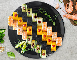 Ролл с креветкой, сливочным сыром, огурцом, и...